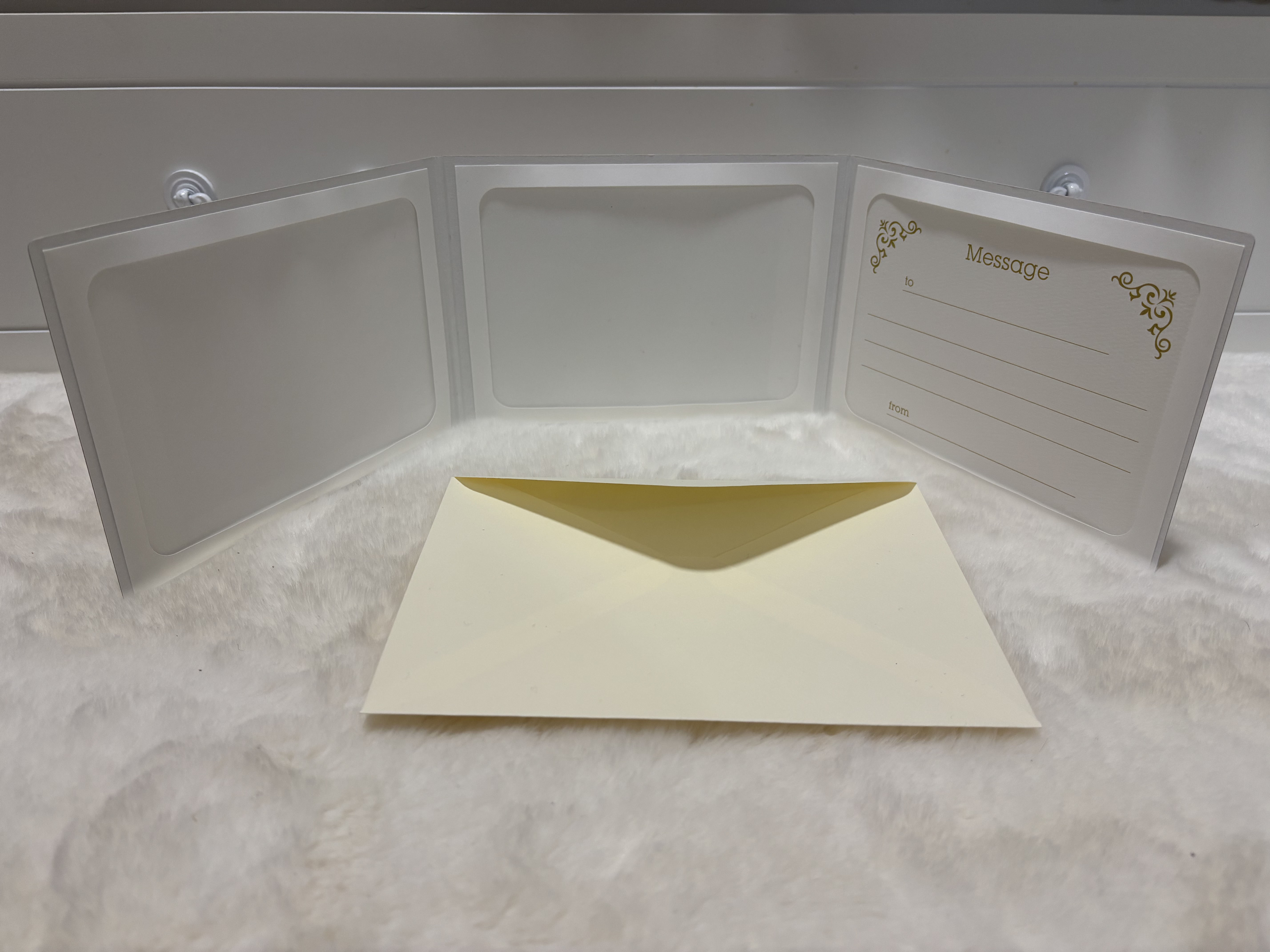 標準プランとして納品するプリント写真3枚(基本セット:ソロアップ・ソロワイド・集合写真)のデータの他に、こちらにて厳選しました追加写真2枚を加え、計5枚の写真データをCD-RまたはDVD-Rにお入れした記念品をお作りいたします。